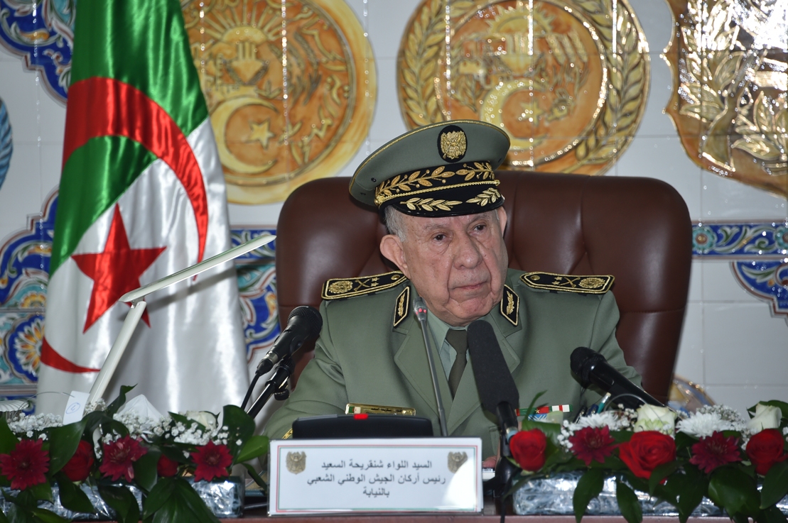 Le Général Major Saïd Chanegriha, chef d’état major de l’ANP par intérim, préside une réunion au siège de l’état major de l’ANP