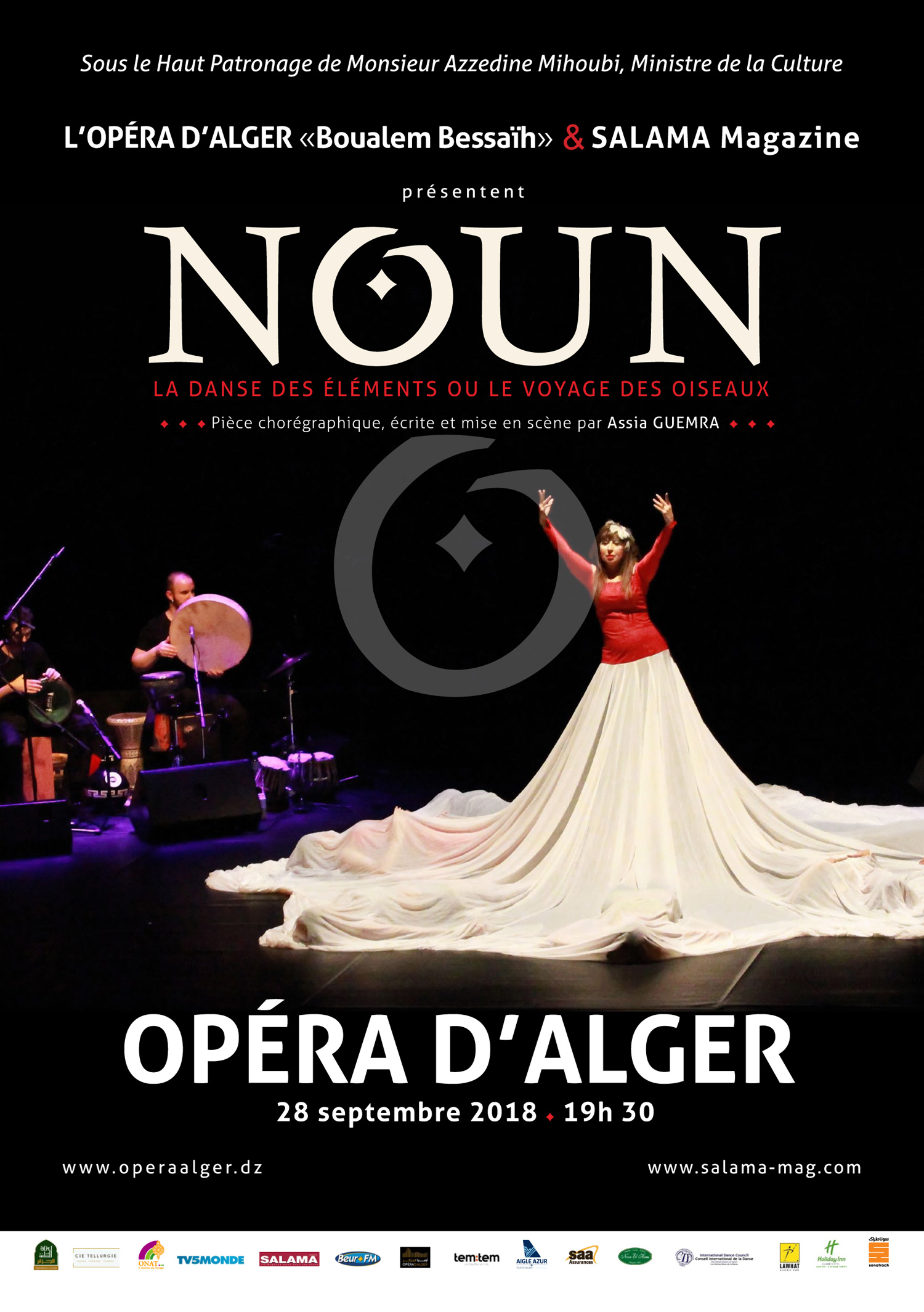 La scénographie, minimaliste mais judicieuse s’est contentée de quelques calligraphies (du Noun) suspendues à l’avant scène, des accessoires et un éclairage des plus concluants qui a créé de belles atmosphères, en phase avec les figures exécutées. En présence du chef de cabinet, du ministère de la Culture, Ali Redjel et le président du Conseil international de la danse, partenaire officiel de l’Organisation des Nations Unies pour l’éducation, la science et la Culture (Unesco), le public , découvrant et se découvrant, a été ravi par la puissance et la beauté des conceptions, tant sur le plan chorégraphique que musical. «Noun», spectacle de danse contemporaine qui interroge l’Homme sur sa raison d’être, présenté dans des formes esthétiques hautement appréciées et très applaudies par l’assistance, a été organisé par l’Opéra d’Alger, organisé pr Salama Magazine, sous l’égide du ministre de la Culture.