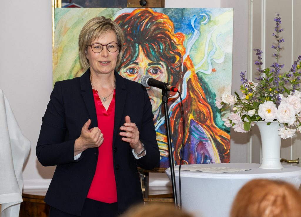 Rappelons au passage qu’il s’agit d’une fédération qui réunit 50 groupes féminins d’horizons divers, sur le territoire de l’état fédéré de Rhénanie-Westphalie. La cérémonieà eu lieu au Waldhof Hackhausen“,un manoir appartenant à Mme Olga von Gregory qui fut une amie de cœur de la défunte artiste. Le manoir du Waldhof – Hackhausen se trouve à quelques kilomètres de l’ancienne colonie d’artistes, dite de la « Maison Noire“ et où l’artiste Bettina Heinen-Ayech est née le 03.09.1937. Les nombreux convives-au nombre de 70- ont pu découvrir la plaque commémorative, qui sera ultérieurement posée au niveau de la Maison Noire. Parmi le public figurait des personnes qui connaissaient personnellementl’artiste ouencore des représentants du Monde de l´art et de la politique.