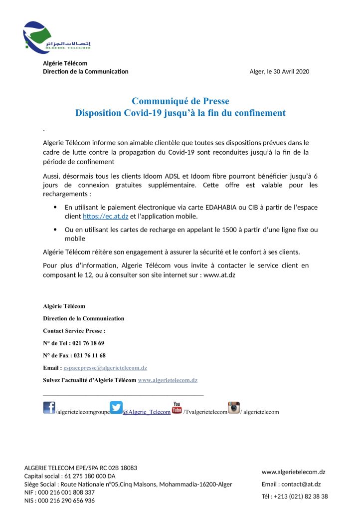 Accueil>A la une>Communiqué A la uneCommuniqués Communiqué Salama Magazine1 mai 2020 51 Moins d’une minute Facebook X Linkedin Pinterest Messenger Messenger WhatsApp Telegram Partager par email Imprimer Salama Magazine1 mai 2020 51 Moins d’une minute Facebook X Linkedin Pinterest Messenger Messenger WhatsApp Telegram Partager par email Imprimer Partager Facebook X Linkedin Messenger Messenger WhatsApp Partager par email Imprimer