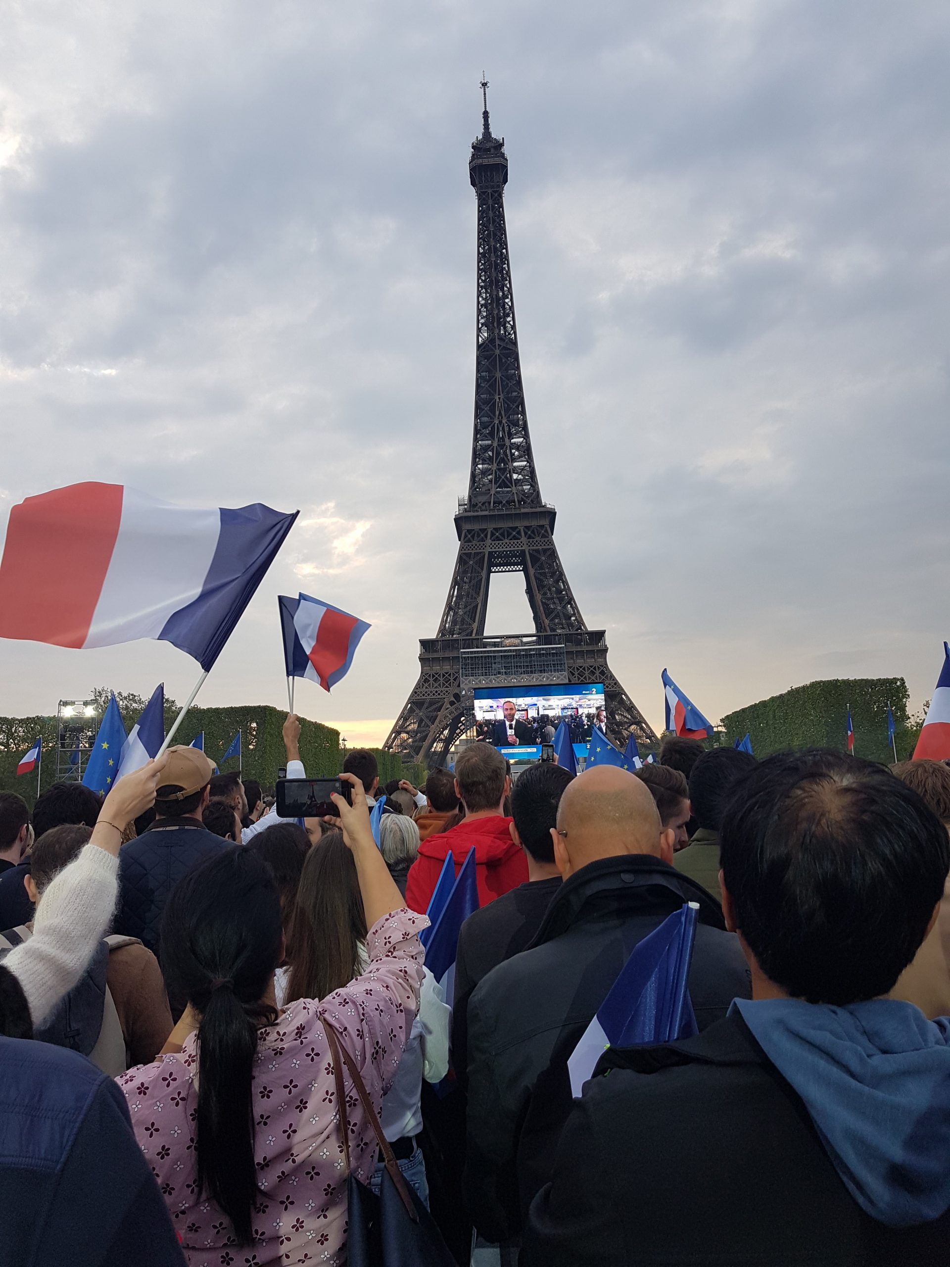 La foule au Champs de Mars qui venait célébrer la victoire Macron