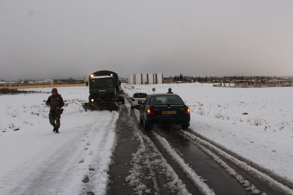 Dans le cadre de leurs missions humanitaires des détachements de l’Armée Nationale Populaire relevant du secteur Militaire de Sidi Belabes/2eRM sont intervenues dans les régions de Rdjem demouch, Sidi chouaib,Dhaya, Oued-Sbaa et Tamlaka sur la route nationale N°13 ainsi qu’au niveau de l’intersection de tamlaka et oued sbaa vers Titin yahia, afin de désenclaver ces localités qui ont connu de fortes chutes de neige. Les éléments de l’Armée Nationale Populaire ont prêté aide et assistance aux citoyens et procédé au déneigement des routes et pistes bloquées.