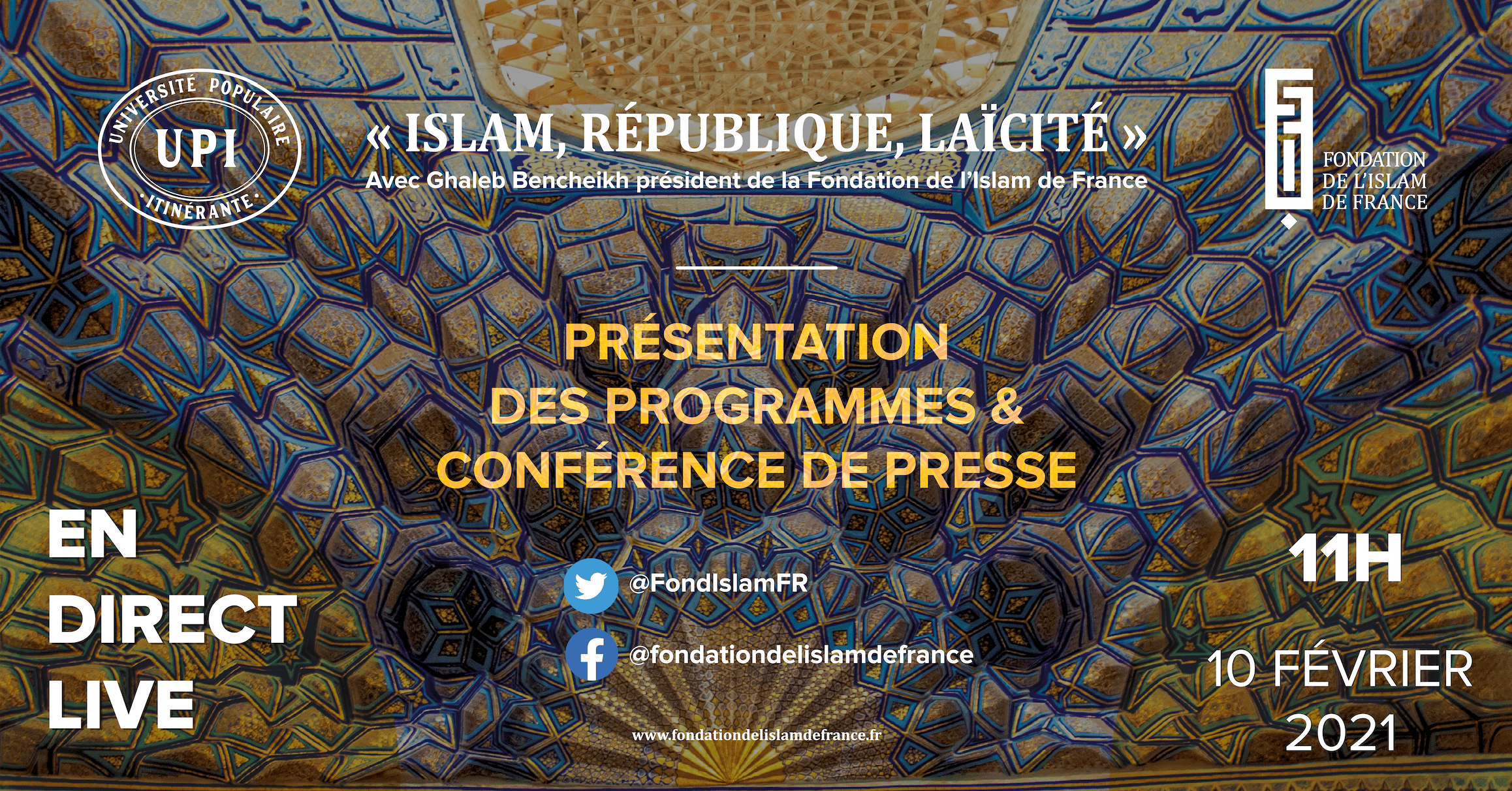 C’est en direct des locaux de la Fondation de l’Islam de France (FIF) que l’équipe a été présentée et que Ghaleb Bencheikh a donné une visio-conférence de presse le 10 février 2021, un évènement trois fois reporté à cause des conditions sanitaires dues à la Covid-19.