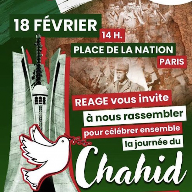 La célébration de la Journée du Chahid, le 18 février de chaque année est une occasion pour la communauté Algérienne de se rassembler à Paris, et d’autres grandes villes en France pour commémorer cette journée des Martyrs Algériens. Ne pas oublier l’histoire qui doit rester dans la mémoire de tous les Algériens où qu’ils soient, hélas ! En France, cette manifestation n’a pas eu lieu, elle est interdite par les autorités françaises.