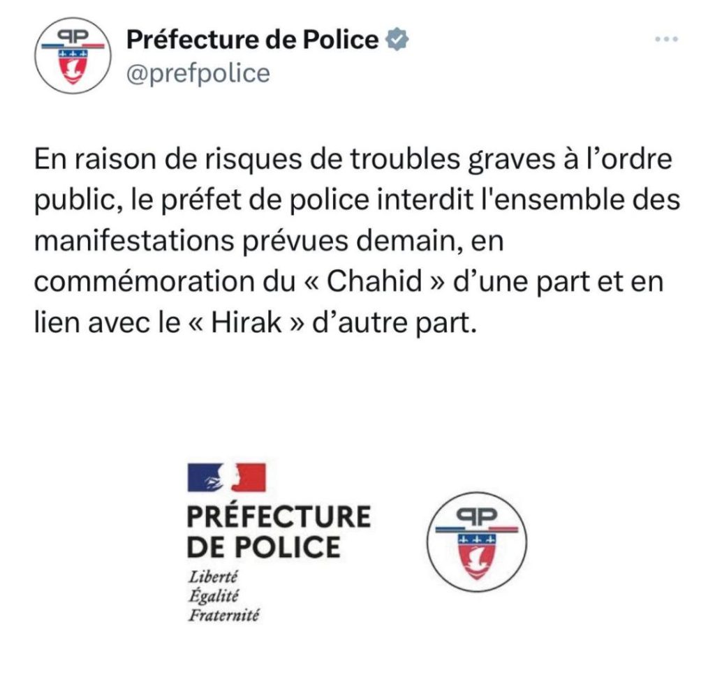 Malheureusement, ce rendez-vous n’a pas pu avoir lieu et cela n’est pas étonnant, puisque cela se passe dans le pays de l’ancien colonisateur. Un rassemblement inédit, hé oui ! Des Algériens à Paris, le jour de la commémoration de la journée nationale du « Chahid » pour exprimer haut et fort leur attachement à la mémoire et l’Histoire de leur pays. Selon l’agence presse service (APS), c’est compréhensible que cette manifestation eût été interdite par les autorités françaises, dont la position sur la question mémorielle n’a pas muté d’un iota, bien entendu ceci dérange et perturbe et prête confusion entre « l’agressé et l’agresseur », « le colonisateur et le colonisé ».