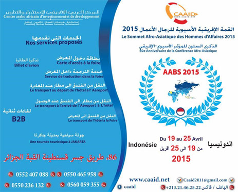 Le Sommet d’Affaires Afro-asiatique (AABS) qui sera ouvert par le Président de la République d’Indonésie verra la participation des représentants de 36 pays ainsi que la présence de quelques Chefs d’Etat et de Gouvernement en qualité de Conférenciers Principaux.