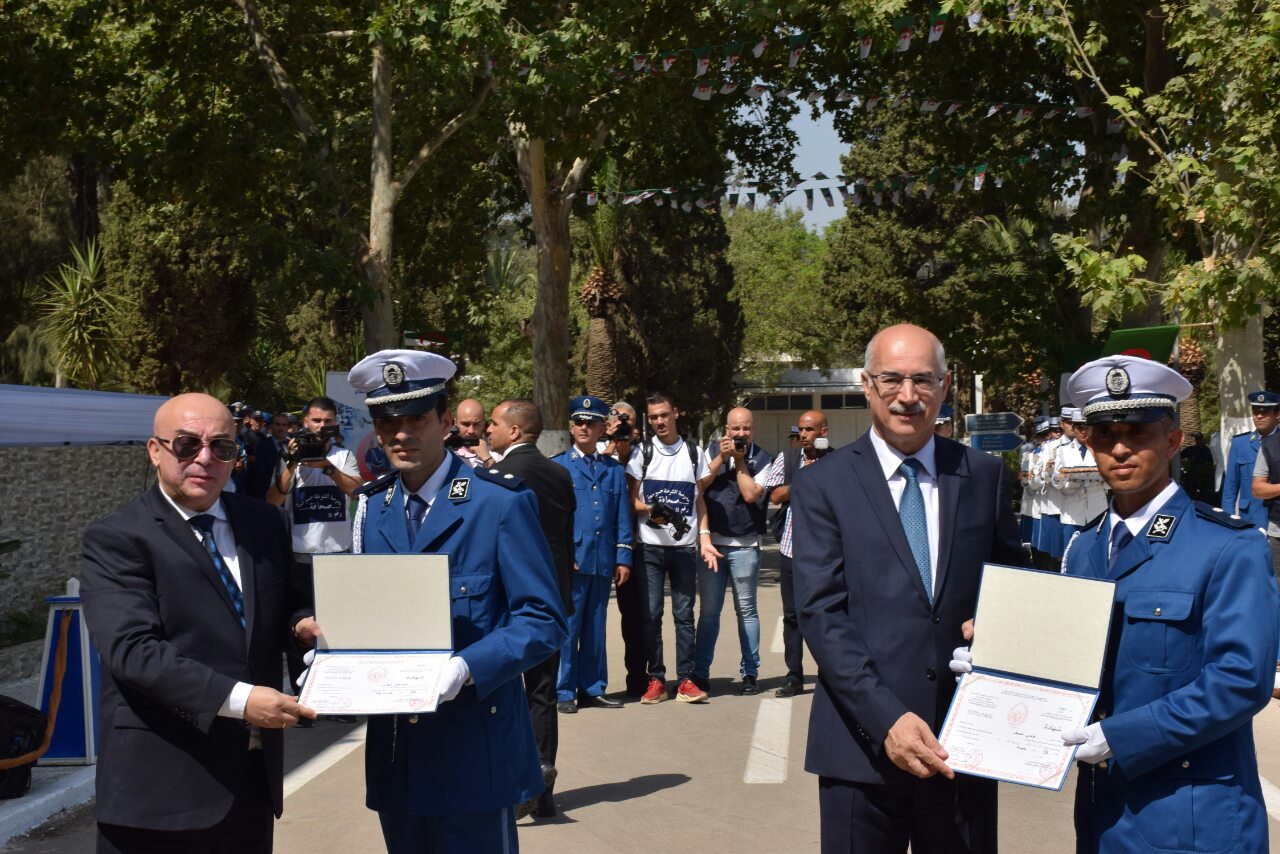 La cérémonie de remise des diplômes à l’école de Police a eu lieu aujourd’hui, dans la matinée du lundi 22 juillet 2019, à Blida. Elle fut dédiée au martyr, le commissaire Ouragh Hussein, décédé suite à un attentat terroriste le 6 février 1994 à Medea. Pour cette occasion, c’est M. Bouzbeid, Ministre de l’Intérieur, accompagné du Directeur général de la Sécurité nationale, M. Bouhdba, qui présida la cérémonie de remise des diplômes.