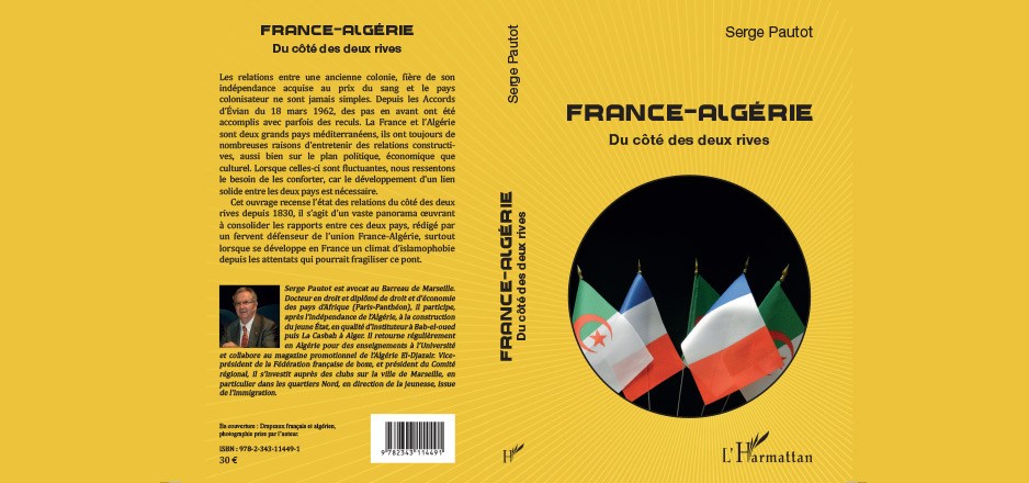 Serge PAUTOT, coopérant après l’Indépendance de l’Algérie en qualité d’ instituteur à Bab El Oued puis à la Casbah, actuellement Avocat au barreau de Marseille, présentera son ouvrage « France – ALGERIE, du côté des deux rives » aux éditions l’Harmattan, le Mardi 11 Juillet 2017 à l’Hotel SOFITEL d’Alger.