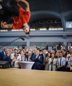 Cette visite à Oran s’est achevée au palais des sports « Hamou Boutelelis » à M’dina Djedida, où le Président Macron a assisté devant un public de 150 jeunes Algériens, il a ensuite assisté à une démonstration de breakdance animée par Mounir Bouba, ambassadeur du breaking pour les JOP2024. Un spectacle de break dance, animé par de jeunes artistes au cours duquel il a eu l’occasion d’échanger avec des jeunes sportifs d’élite présents sur les lieux.