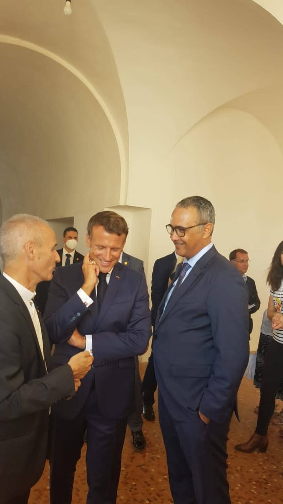 Emmanuel Macron et Kamel Daoud accompagnés de l’archevêque d’Alger à Saint Cruz