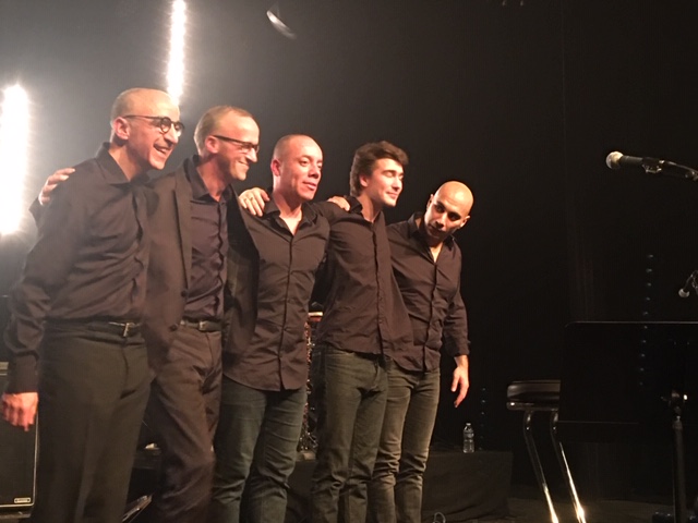 3- De gauche à droite : Hugo Proy : Clarinette, Mustapha Mataoui : Piano et direction musicale, Mehdi Askeur : chant/accordéon, Kamal Mazouni : Basse, Amar Chaoui : Percussions – Le Nouveau Cap à Aulnay sous Bois, concert du 17/01/2020 – ©DS
